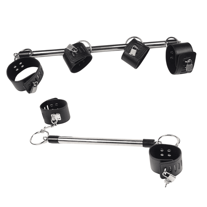 Las barras sado están fabricadas en acero inoxidable de alta calidad, y las esposas están hechas en cuero PU sintético, suave al tacto y resistente al uso prolongado. Además, las esposas son ergonómicas y ajustables, adaptándose a distintos tamaños de muñecas y tobillos sin causar molestias.